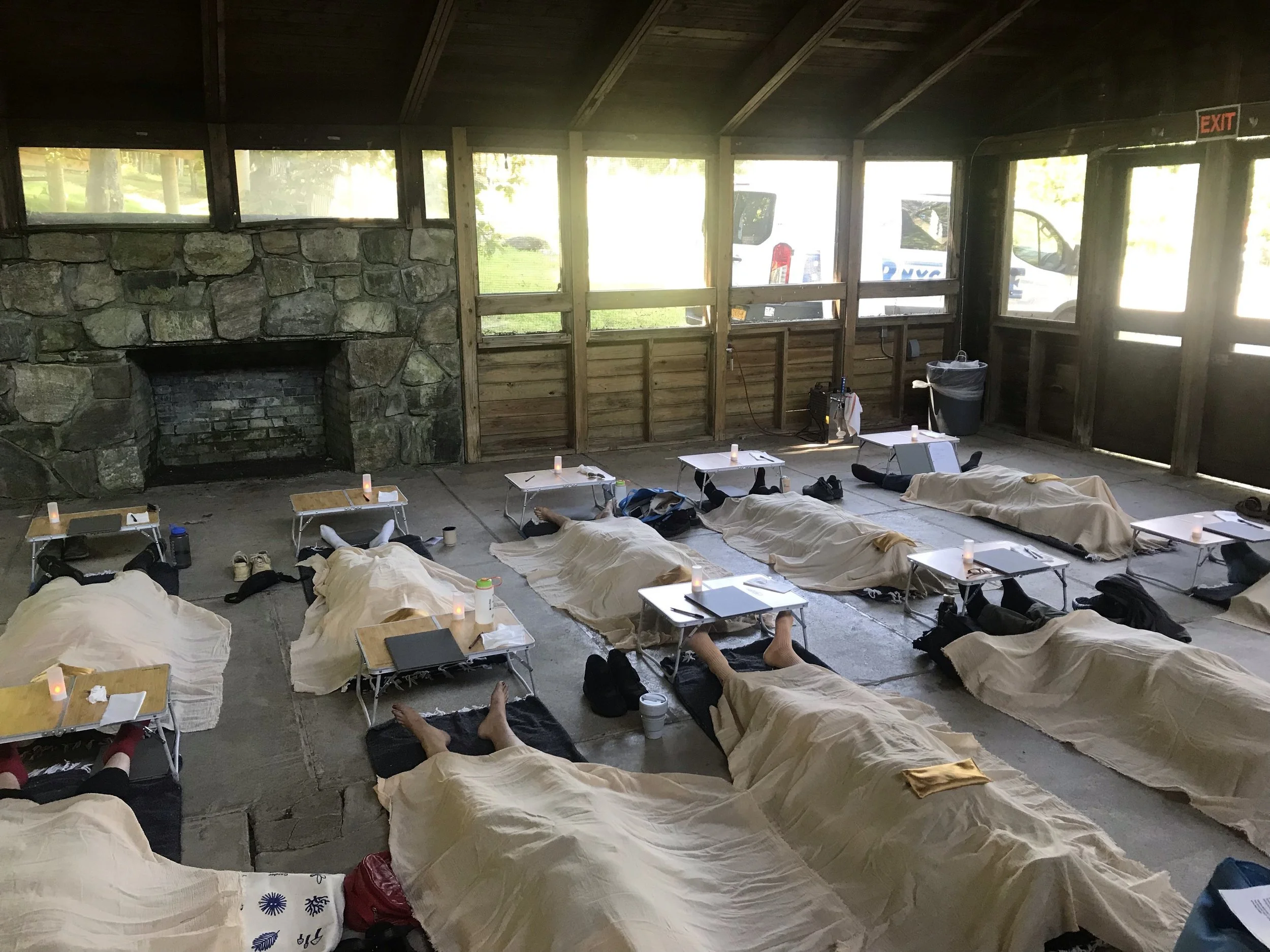 A Living Funeral Ceremony is a 2-hour guided experience that invites participants to gently turn towards their own mortality. During the ceremony, individuals confront their own memorial, participate in a writing exercise, and are led through a death visualization + meditation.